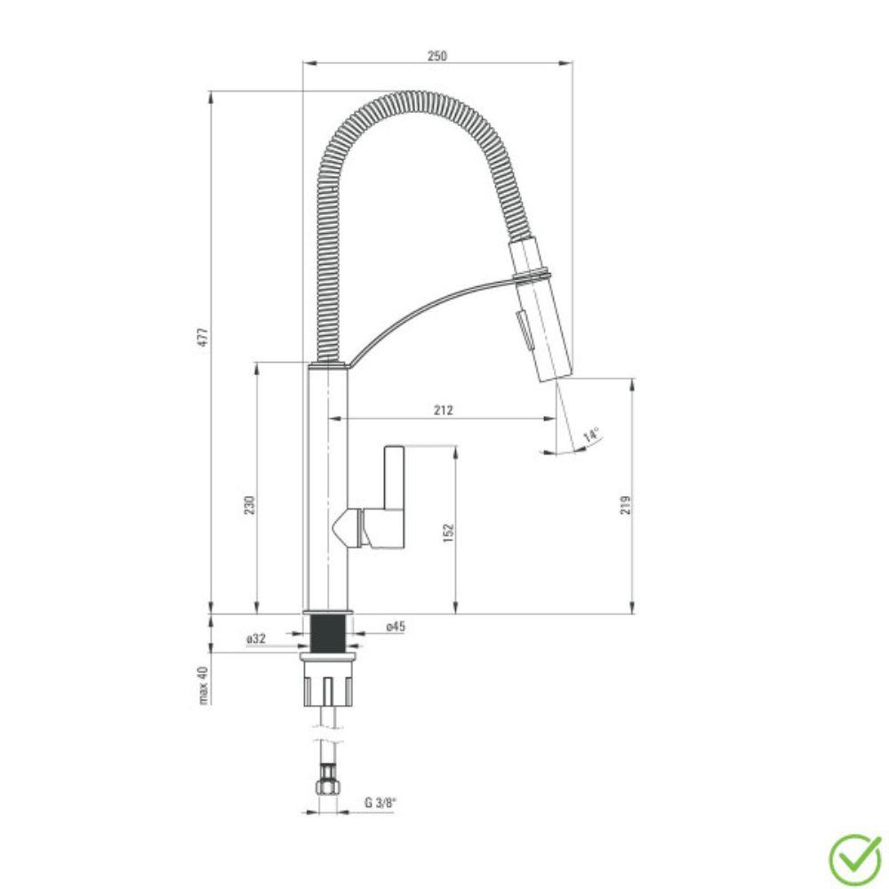 Fleksibilni izliv omogućava lako upravljanje mlazom vode, što je čini idealnom za kuhinje sa većim sudoperama i svakodnevnu pripremu hrane. Uz visinu od 477 mm i raspon od 212 mm, slavina pruža dovoljan prostor za udobno pranje posuđa.