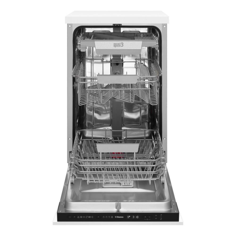 Hansa ZIM466ELH je ugradna sudomašina dizajnirana za maksimalnu efikasnost u malim kuhinjama. Sa širinom od samo 45 cm, nudi kapacitet za 10 kompleta sudova, raspoređenih u čak tri korpe, što omogućava lako pranje i organizaciju čak i većih količina posuđa.