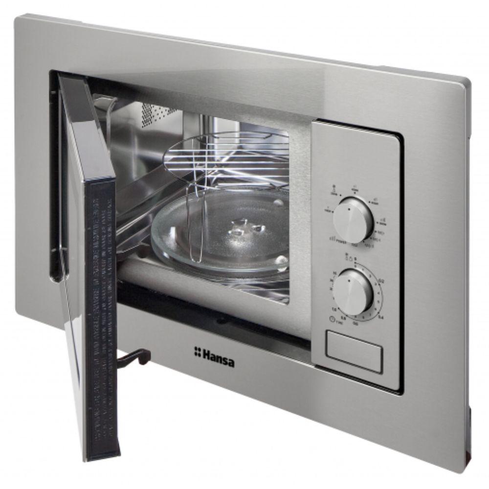 Hansa AMM20BMXH je elegantna i funkcionalna mikrotalasna rerna sa integrisanom grill i combigrill funkcijom Kombinacija snage od 800 W za mikrotalase i 1000 W za gril omogućava brzo i ravnomerno zagrevanje ili pečenje hrane Mehanička kontrola sa pet nivoa snage i tajmerom do 30 minuta olakšava upotrebu dok unutrašnjost od nerđajućeg čelika i rotirajući tanjir prečnika 24.5 cm obezbeđuju čistoću i efikasnost Moderan dizajn u čistom inoxu uklapa se u svaku kuhinju