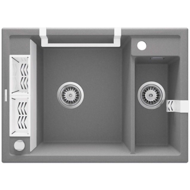 Sistem korpi omogućava uredno odlaganje deterdženata i sitnog pribora, dok zasebni držači za sunđere i kuhinjske krpe obezbeđuju čist i organizovan radni prostor. Zahvaljujući modernom i univerzalnom dizajnu, set se savršeno uklapa uz granitne, čelične i keramičke sudopere.